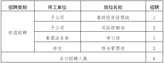 按照集团实际用工需要,决定通过校园招聘部分岗位人才数名,具体事项公告如下:
